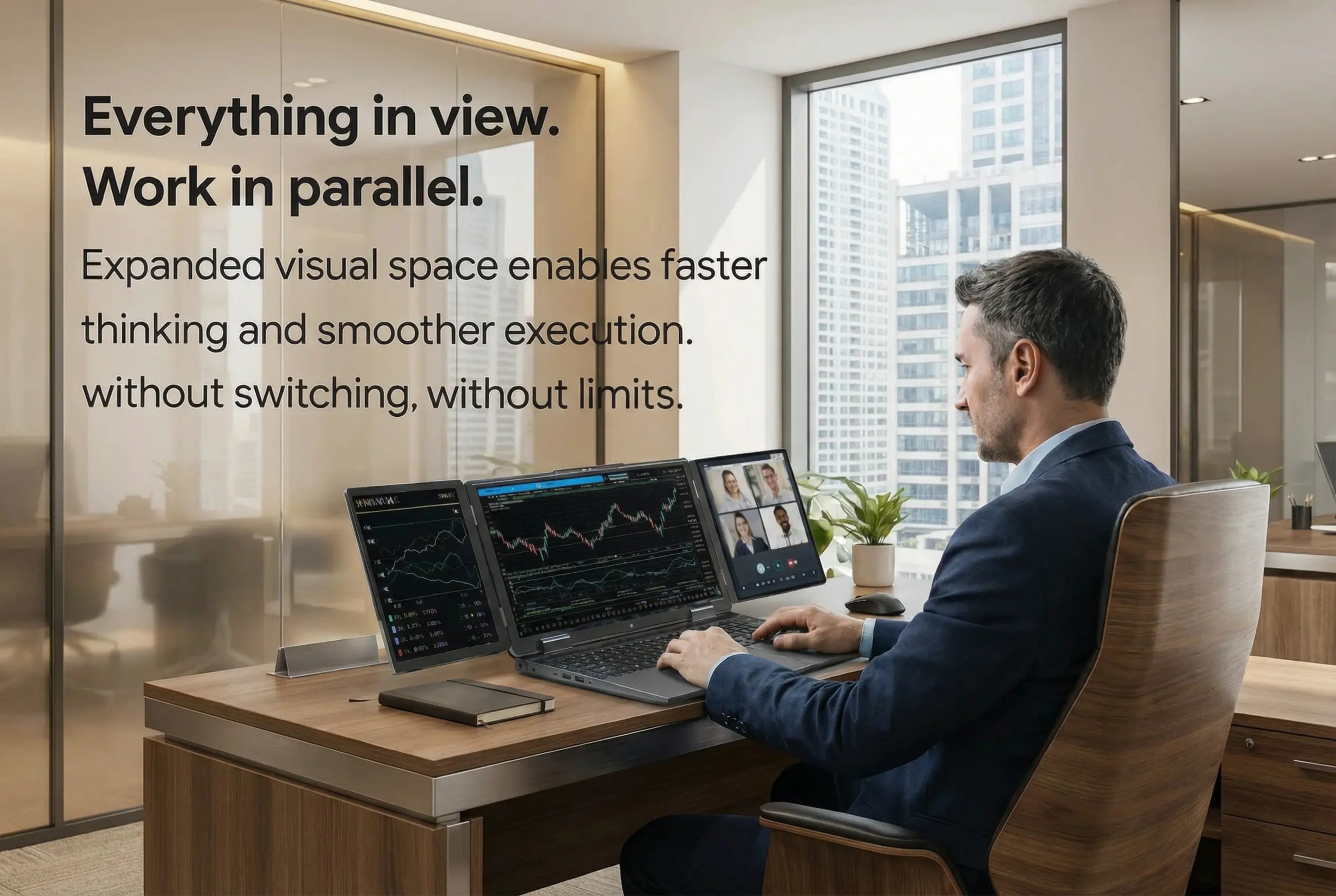 By giving you three integrated displays in one system, XENOVA adapts to how you already think and work — instead of forcing you to adapt to your laptop.